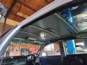 張替え作業をする為には天井ライナーを車内から取出さなければいけない為、